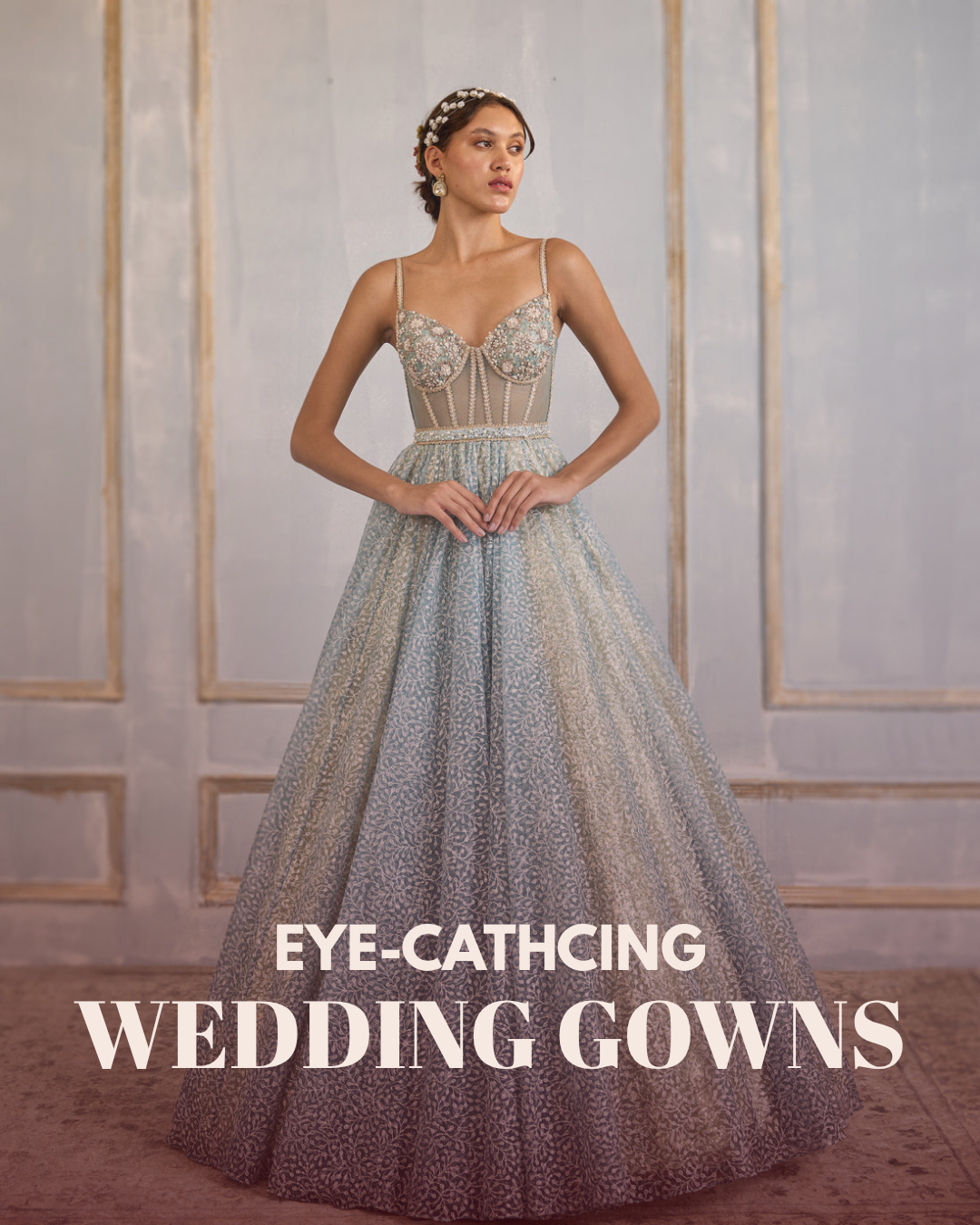 Elegant Beige Tabby Organza Floral Print Gown with Dupatta