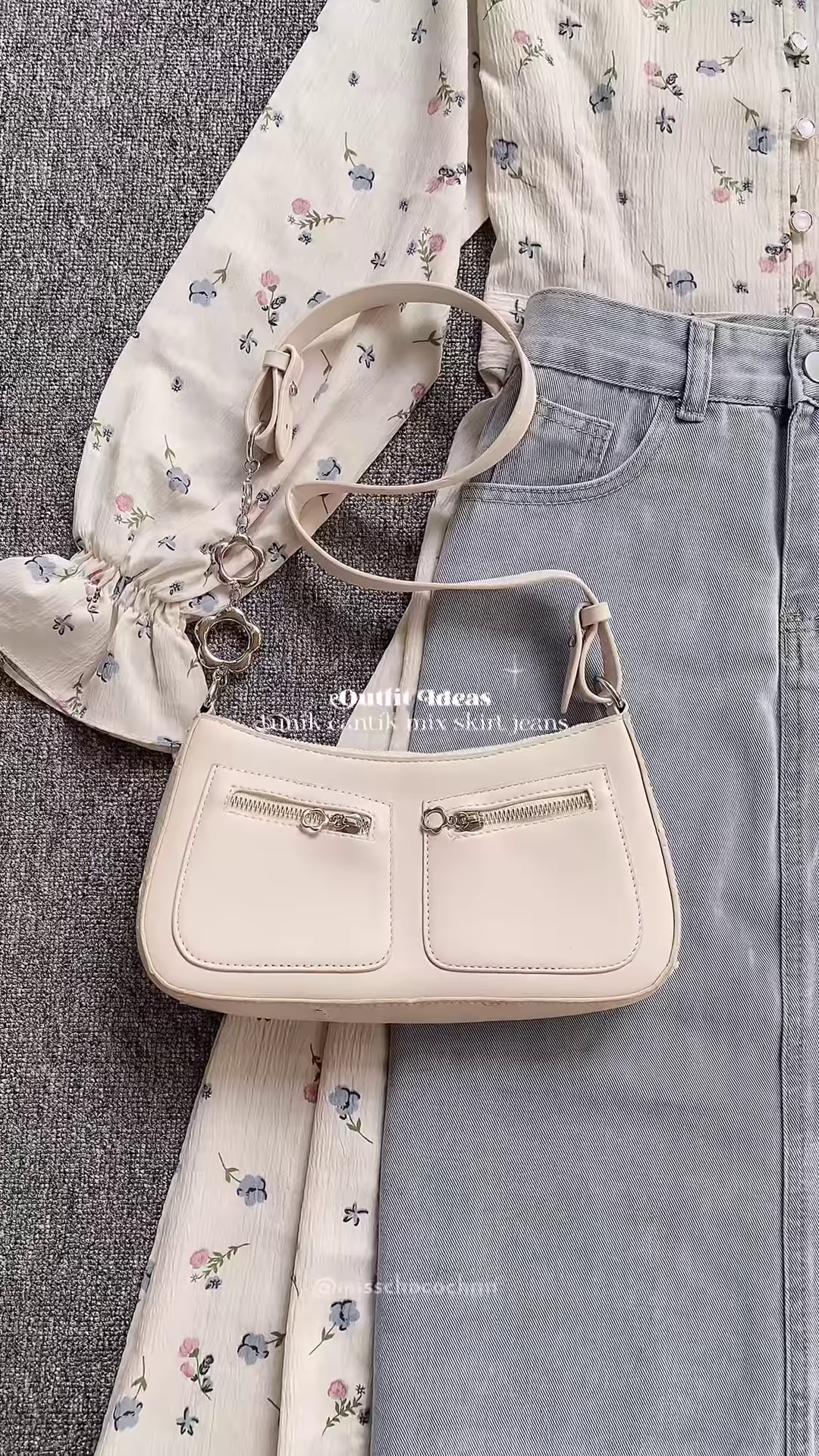 🌸 Elegant Floral Blouse & Denim Skirt Outfit 🌸