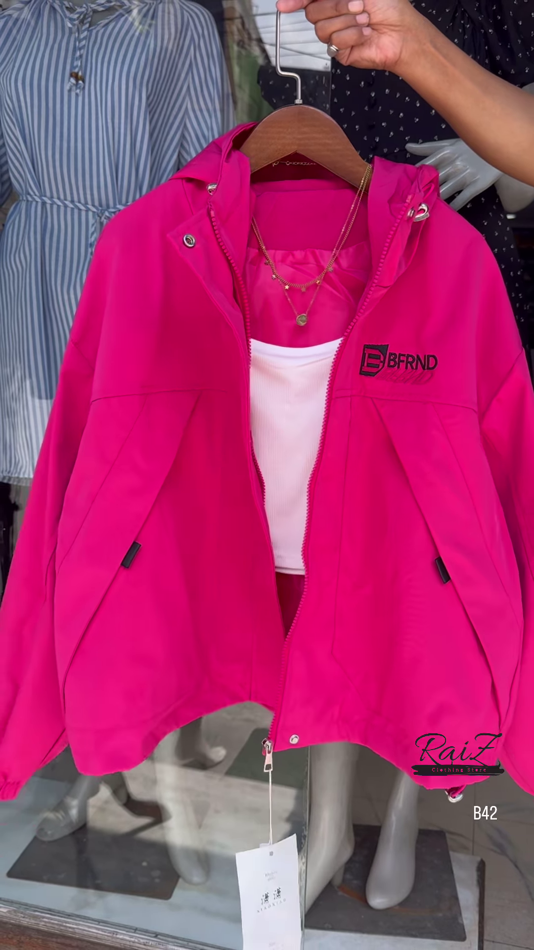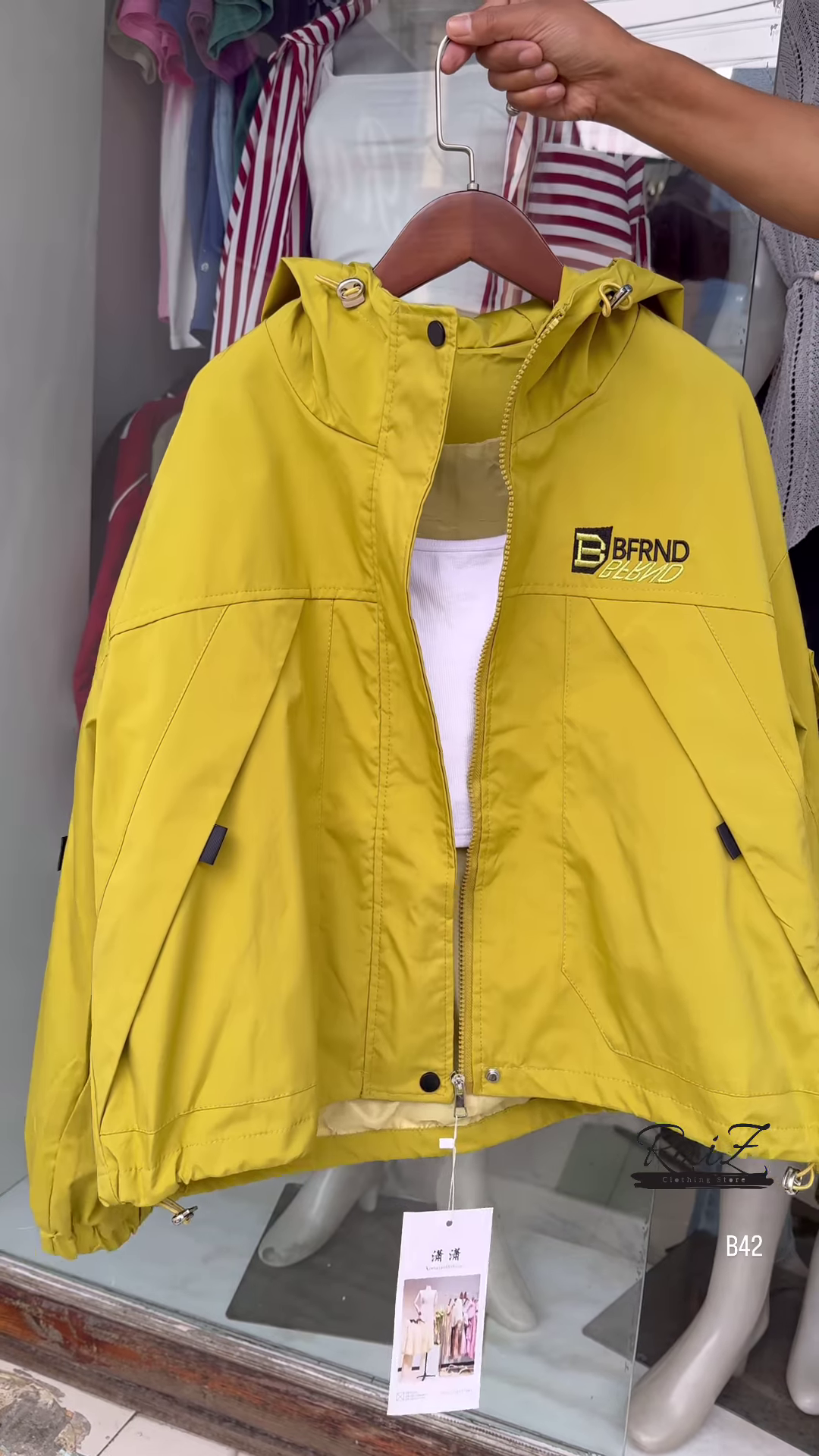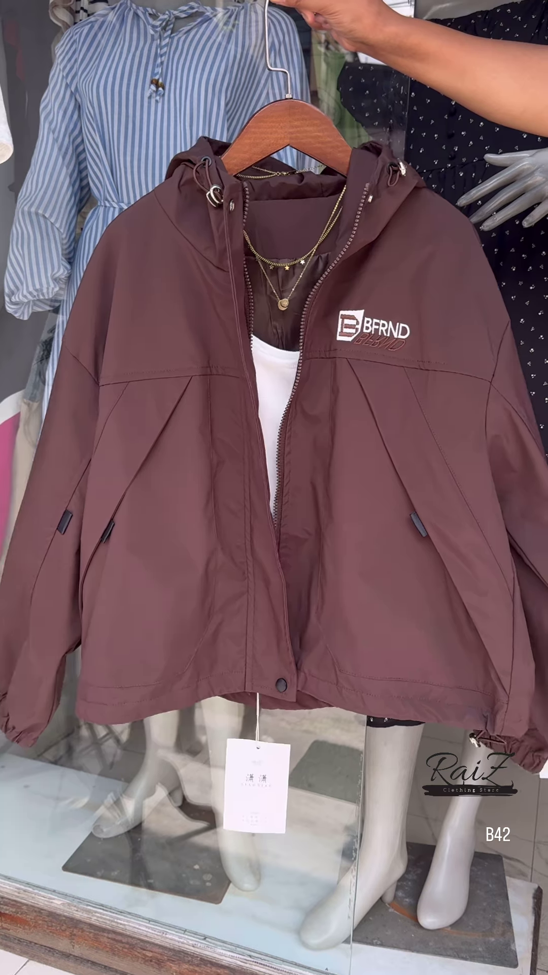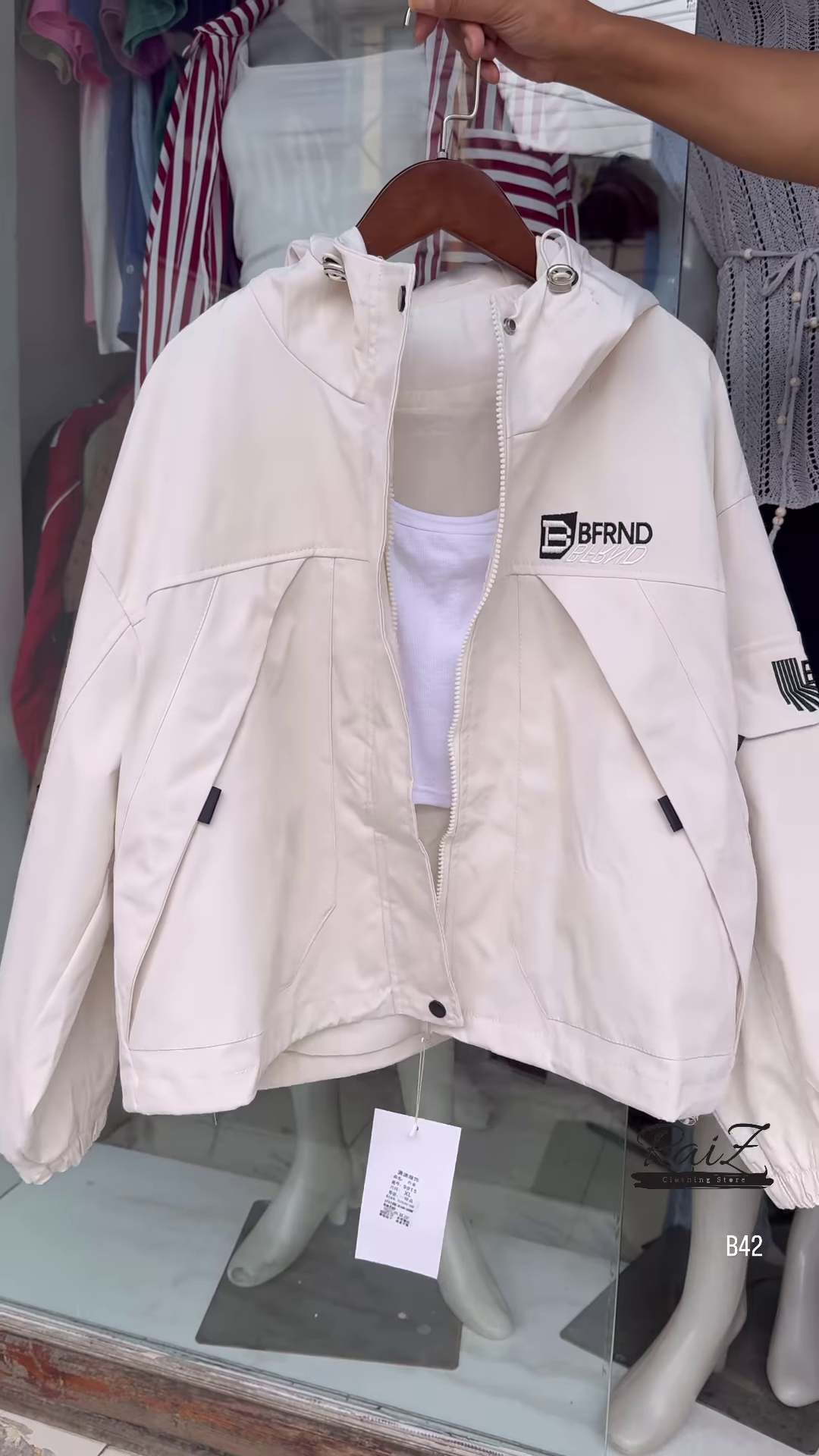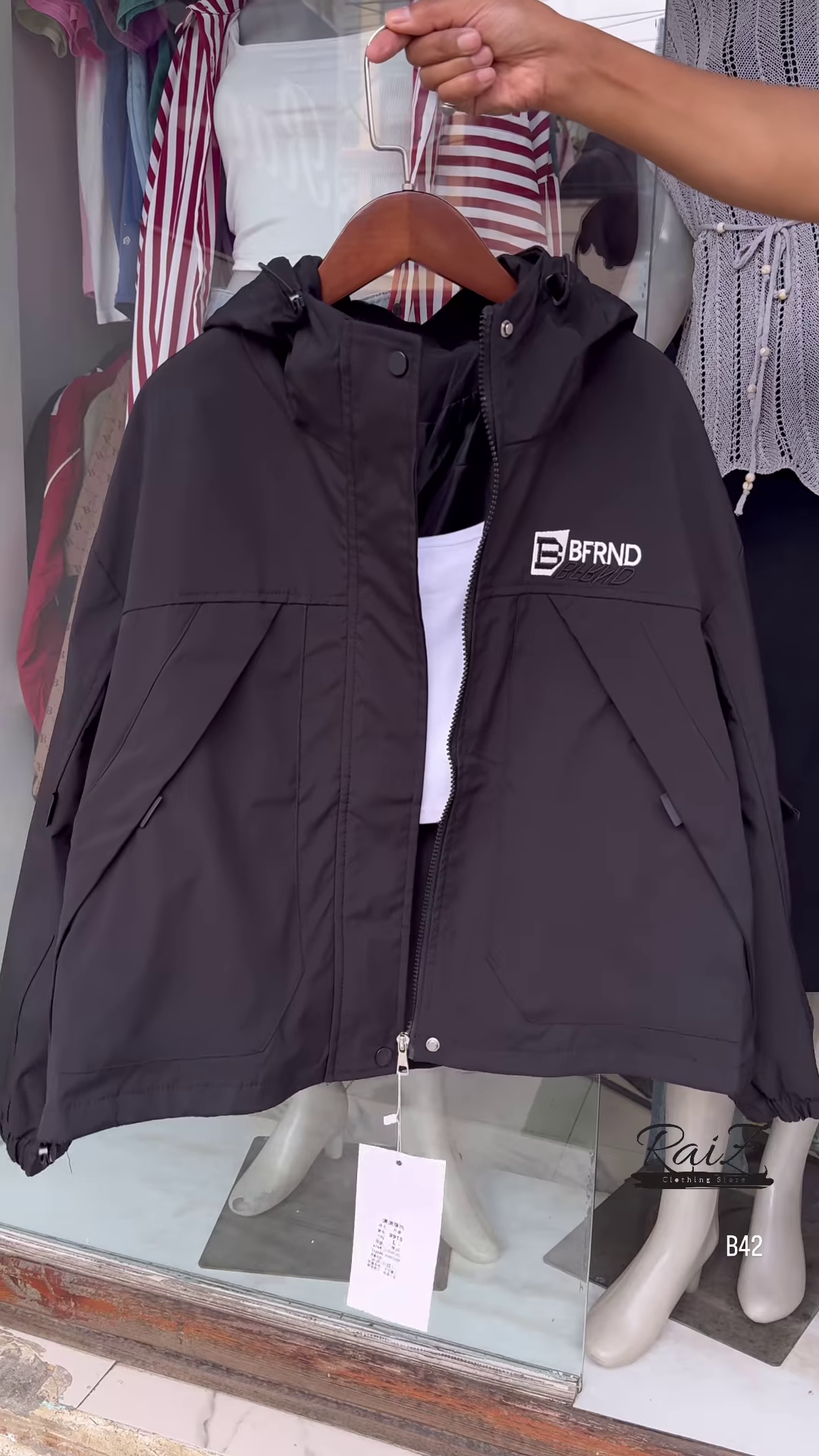 Make a bold statement with this stylish BFRND hooded windbreaker! Perfect for all seasons, this lightweight jacket adds the perfect touch of sporty chic to your outfit.