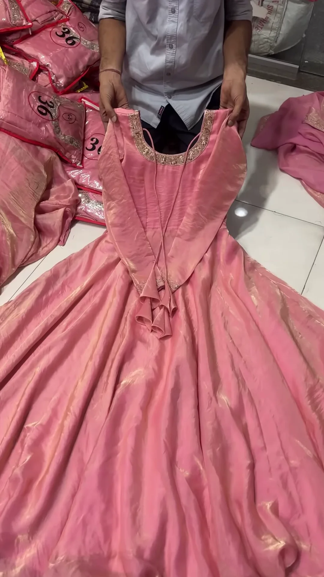 Drape yourself in elegance with this stunning 3-piece Anarkali suit set, designed to bring out your inner diva. Crafted from luxurious fabric with a subtle sheen, this pink Anarkali features a flared silhouette, full sleeves, and an intricately embellished neckline. Paired with a matching churidar bottom and lightweight dupatta, this ensemble is perfect for festive occasions, weddings, and special gatherings.