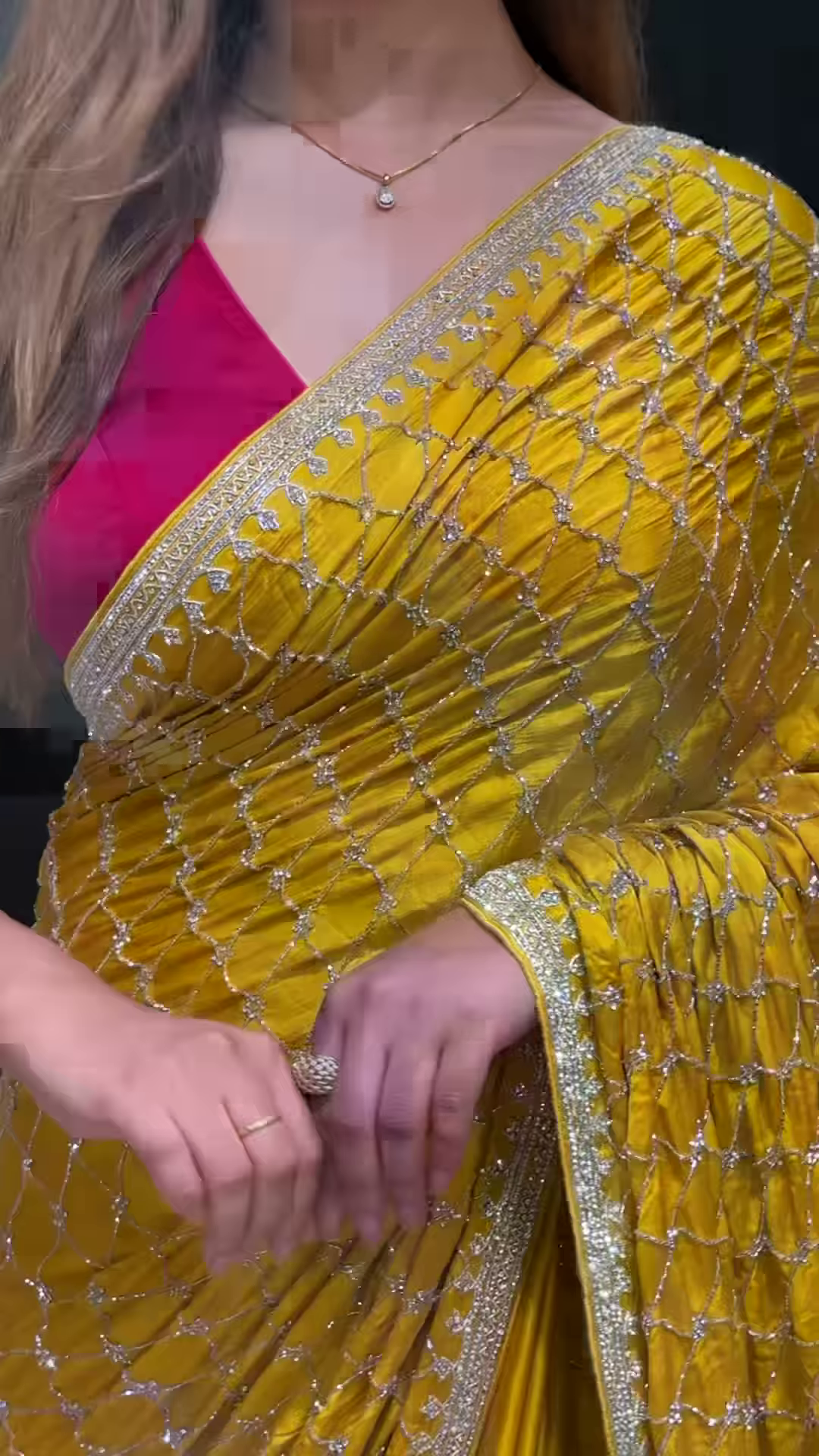 With its timeless charm and modern accents, this yellow saree is a must-have addition to any wardrobe. It celebrates tradition while offering versatility and style, making it an evergreen fashion choice.