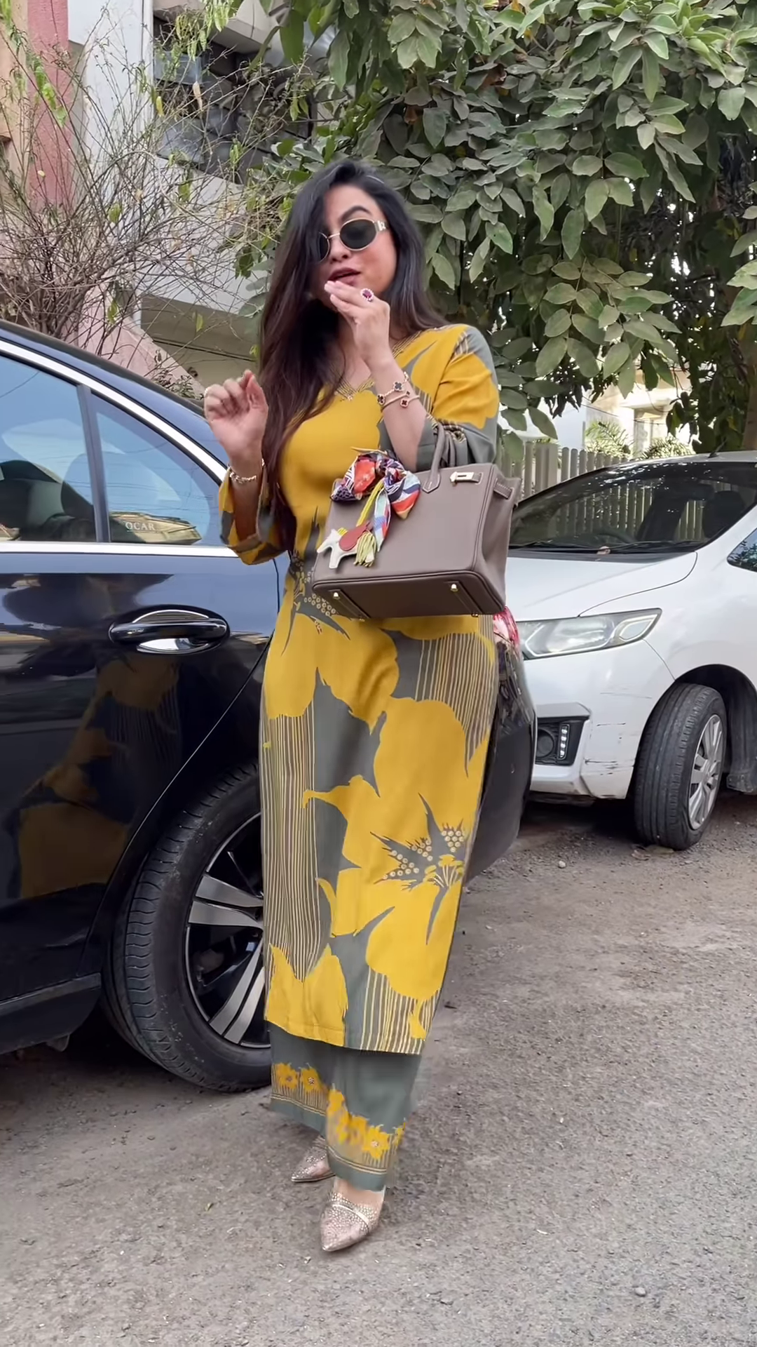 This contemporary kurti combines traditional styling with modern floral aesthetics for a sophisticated yet vibrant look. The contrast between the rich mustard yellow florals and olive green base creates a stunning visual appeal suitable for multiple occasions.