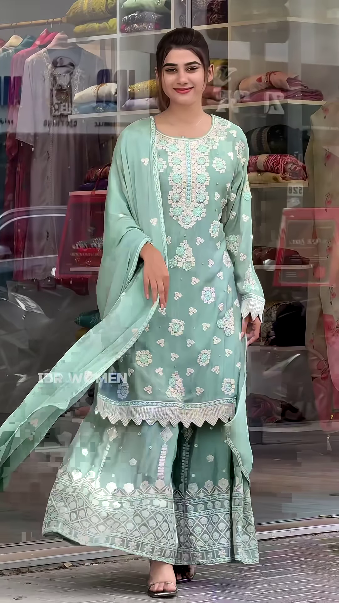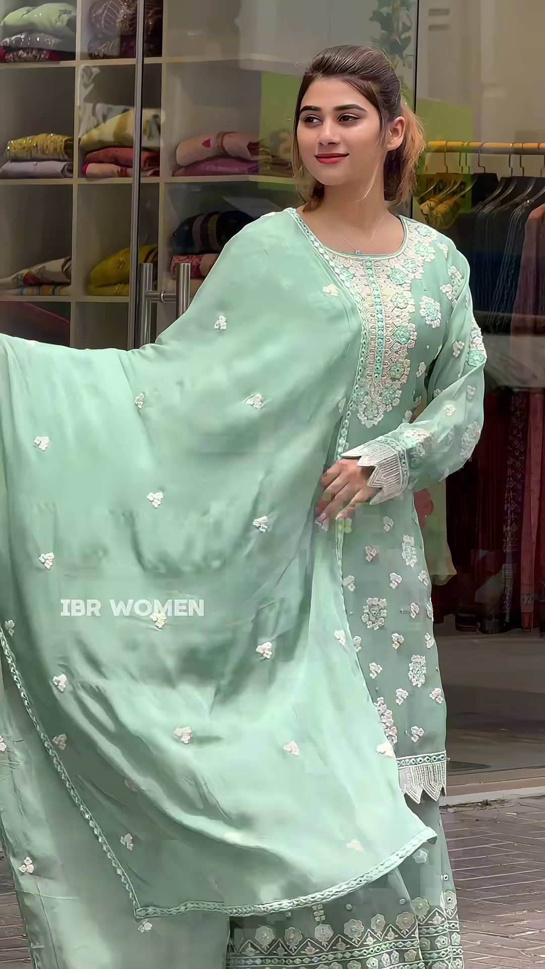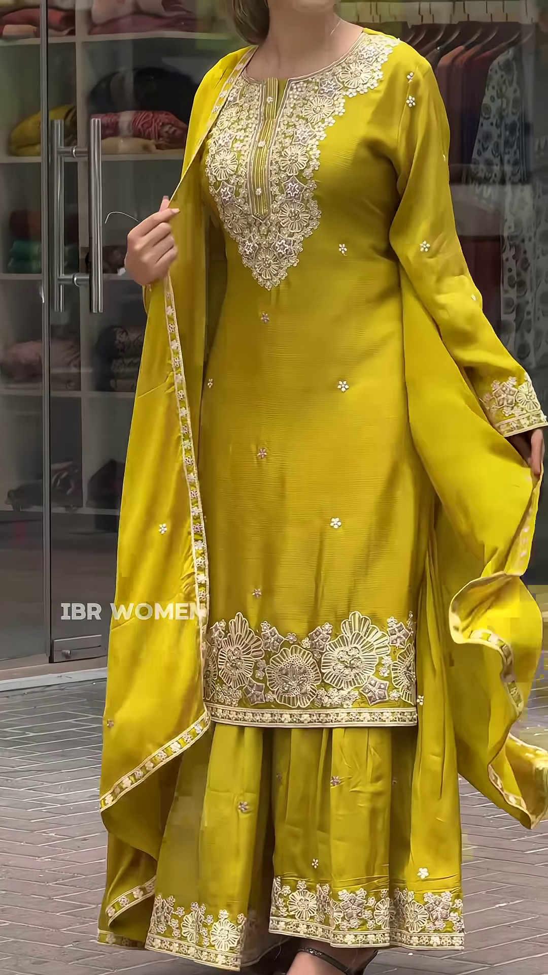 The dupatta, designed with complementing embroidery, completes the look, adding an aura of sophistication. Its lightweight texture makes it easy to drape, allowing you to style it in multiple ways. The color combination of yellow and pista green exudes a refreshing and timeless vibe, suitable for women of all age groups.